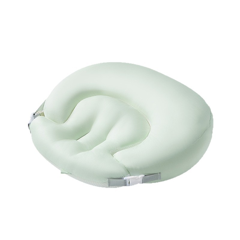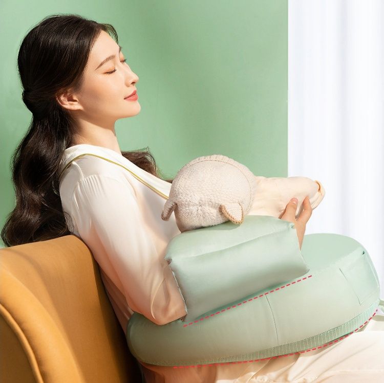 人間工学に基づいた三日月型デザインで、長時間の授乳でも腕や肩への負担を軽減します。