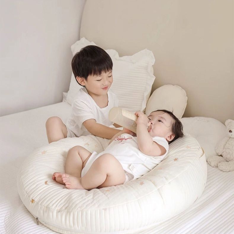授乳時だけでなく、赤ちゃんのお昼寝スペースや座り始めのサポートとしても活躍する多機能設計です。