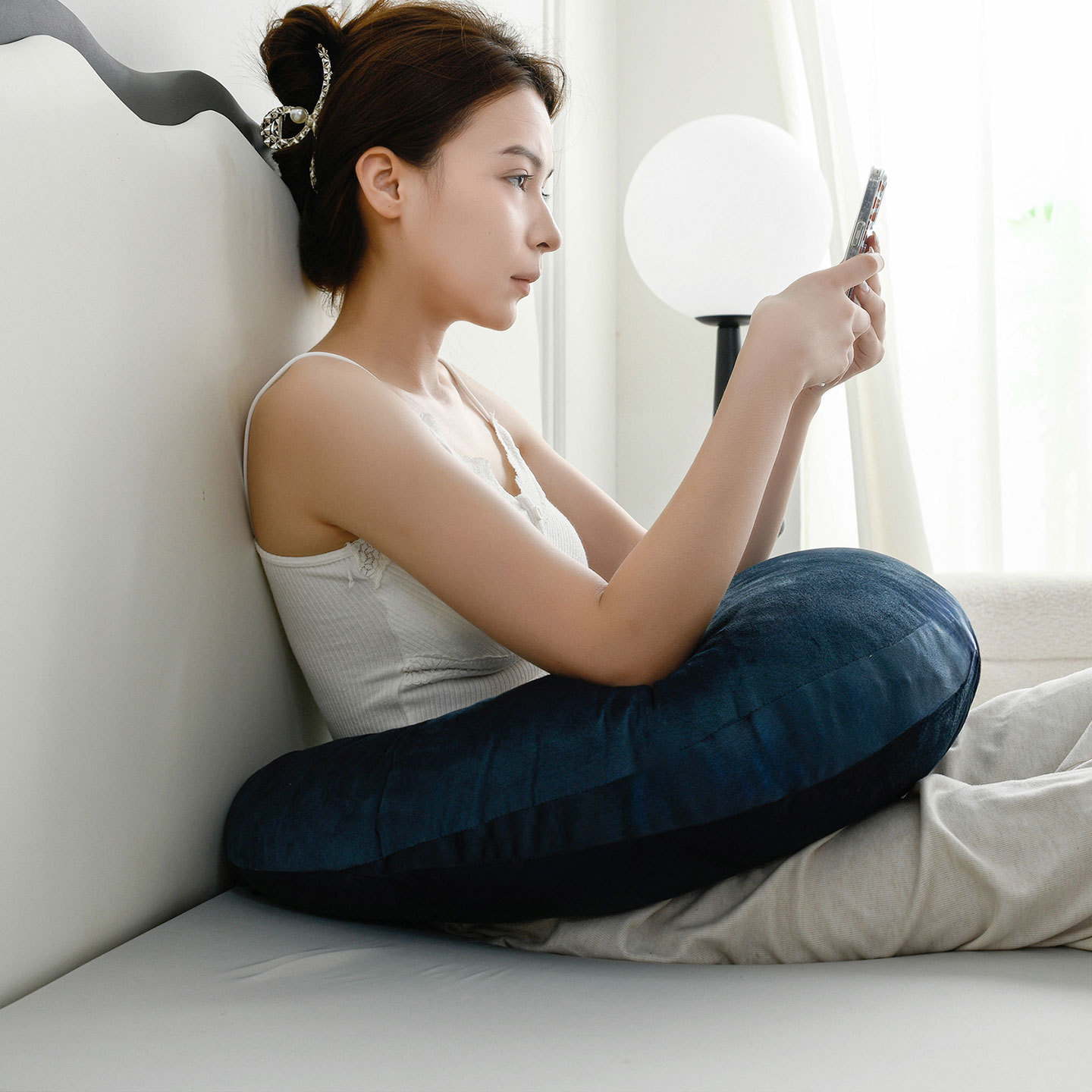 三日月型の形状が腰回りにフィットし、長時間の授乳でも疲れにくい設計になっています。